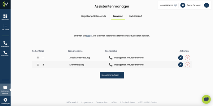 Der Assistent lässt sich unkompliziert und zügig an Ihre spezifischen Bedürfnisse anpassen. Dazu haben Sie die Möglichkeit, eigene Szenarien zu erstellen, die auf Ihre häufigsten Anfragen abgestimmt sind. Ein Szenario stellt dabei ein potenzielles Anliegen dar, das während eines Anrufs oder Chats auftreten kann.